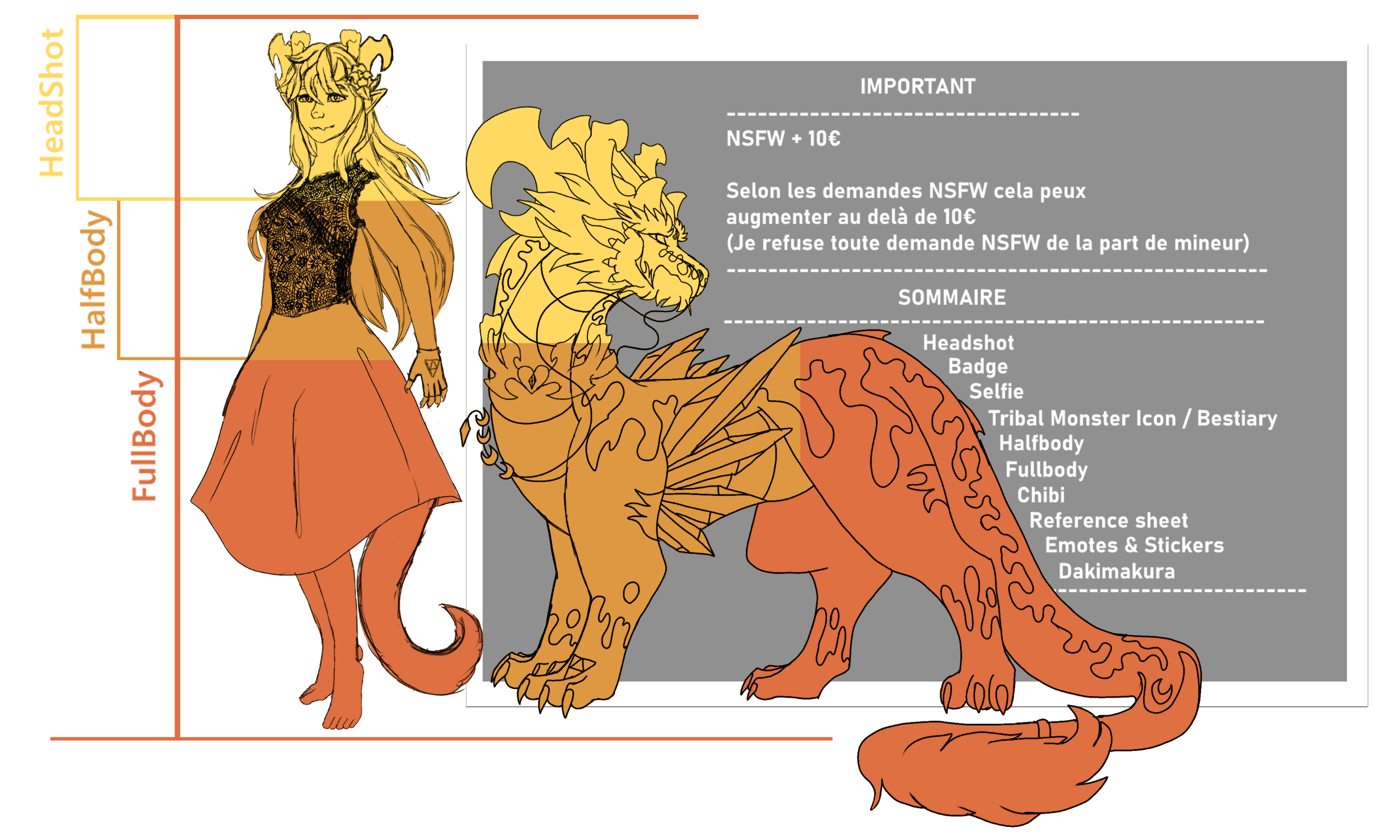 Si vous voulez ajouter :- Un fullbody (anthro ou feral) + 15 €